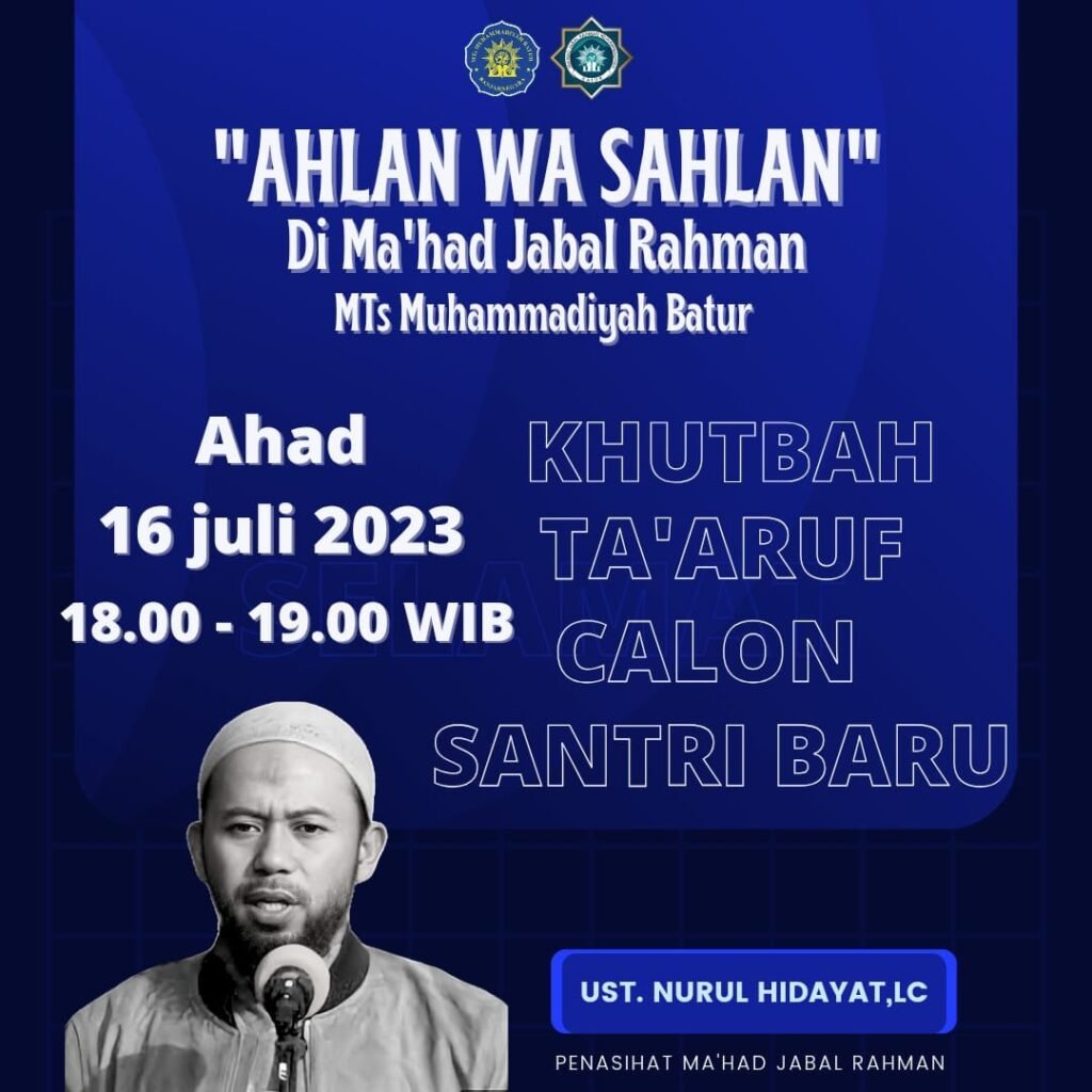 Ba’da maghrib bertempat di Masjid Al-Ikhsan MTs Muhammadiyah Batur, para santri Ma’had Jabal Rahman beserta para wali menghadiri acara Khutbah ...