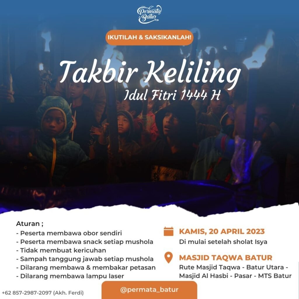 Pada tanggal 20 April 2023, masyarakat di daerah Batur, Banjarnegara, Jawa Tengah akan melaksanakan takbir keliling dalam rangka menyambut Idul ...